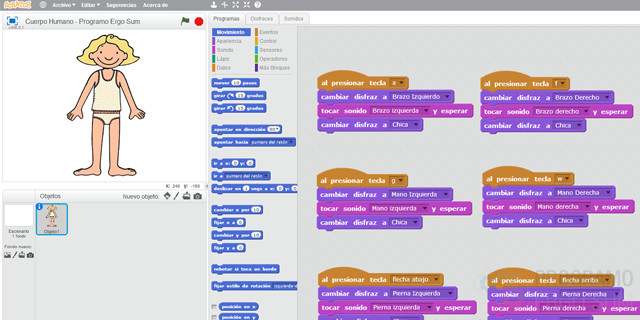 En este tutorial aprenderás a utilizar la placa de electrónica Makey-Makey junto al lenguaje de programación por bloques de Scratch para crear una aplicación educativa encargada de detectar las diferentes partes del cuerpo humano al mismo tiempo que se muestra un mensaje por la pantalla del ordenador.