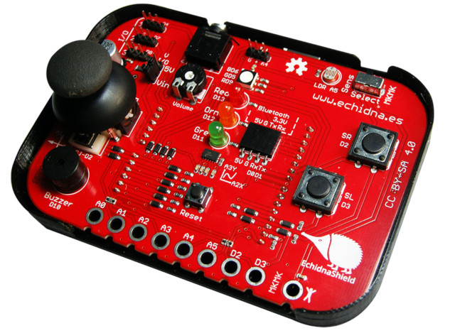 Echidna Shield es una placa para arduino dirigida a facilitar el aprendizaje de la robótica en los últimos cursos de educación primaria y secundaria, como indican en la propia web del proyecto. Surge ante la necesidad de dotar a los centros educativos con herramientas que les permitan conectar el mundo físico con el digital a través de herramientas libres. Es un proyecto OpenSource creado por Jorge Lobo, Xabier Rosas y José Pujol, profesores y entusiastas de la robótica educativa.