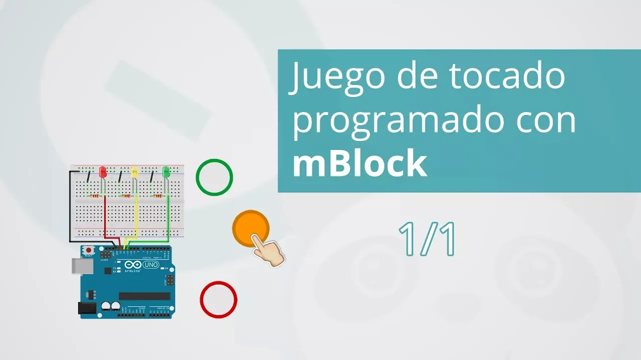 En este curso aprenderás a programar un sencillo videojuego utilizando el lenguaje de programación por bloques de mBlock (basado en Scratch 2.0) e interactuar con las salidas digitales de una placa de Arduino. El juego consiste en tocar los diferentes objetos de colores y encender los LEDs correspondientes.